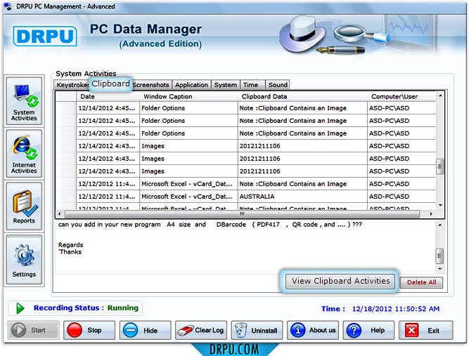 Click on “Clipboard” tab to view clipboard activities.