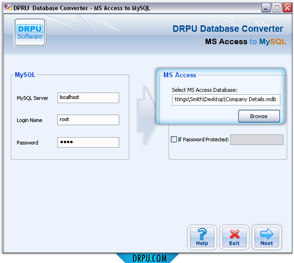MS Access database conversion software also converts password protected database records into MySQL database server with support to necessary data types and attributes including indexes, null value, primary key and unique key constraints.